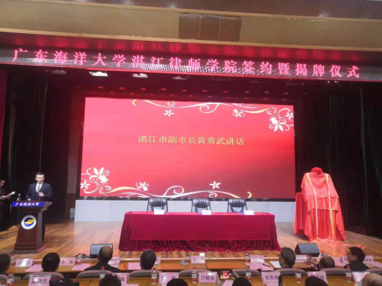 2020年12月29日上午9时,beats365vip官网登录入口、湛江市司法局、湛江市律师协会合作共建“beats365vip官网登录入口湛江律师公司”签约暨揭牌仪式在beats365vip官网登录入口顺利举行。湛江市人民政府黄勇武副市长、市司法局颜战克局长、市律师协会李峰会长、beats365vip官网登录入口党委副书记纪委书记彭权群、法政公司党委书记陈伟斌、经理张显伟等150多人出席仪式。签约暨揭牌仪式由湛江市司法局二级调研员、湛江市律师行业党委书记李军主持。