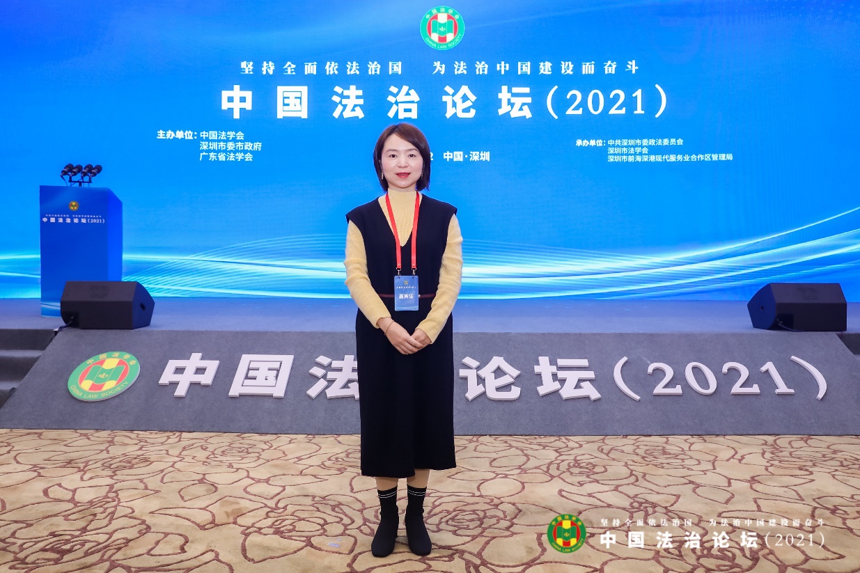 12月23日,公司beats365vip官网登录入口副教授张艾妮应邀参加了在深圳举行的由中国法学会、深圳市委市政府、广东省法学会主办的中国法治论坛(2021)。论坛主题为“坚持全面依法治国 为法治中国建设而奋斗”。论坛紧扣法治中国建设实践需求,精心设置“法治中国建设背景下的粤港澳大湾区法治建设”“构建新发展格局的法治保障”和“建设法治先行示范城市的理论与实践”等三个单元共9个议题,邀请来自国内外近30名法治建设各领域著名专家学者,通过线上线下相结合方式深度参与交流。