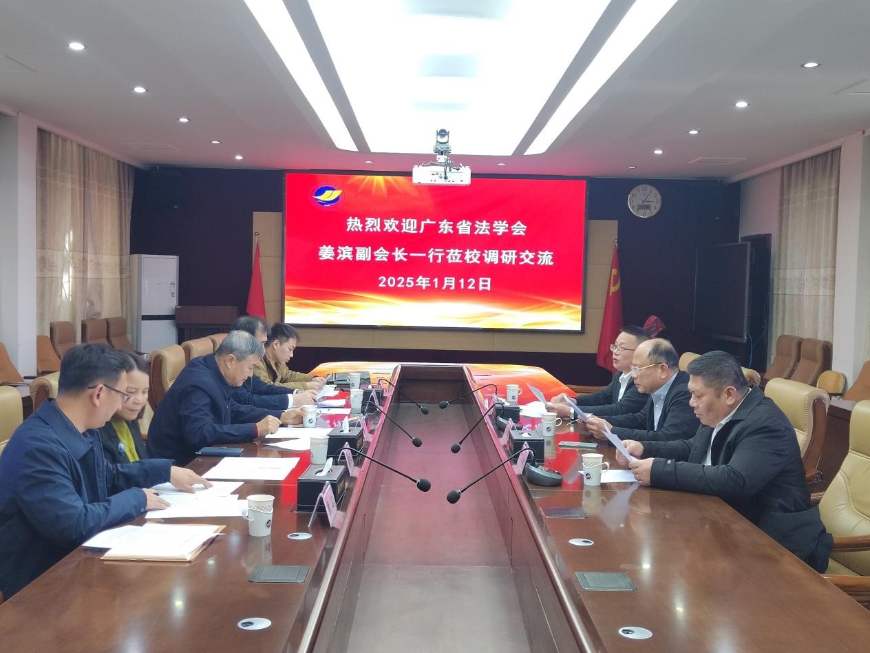 1月12日,广东省法学研究会副会长姜滨、三级调研员郑桂琼、湛江市政法委副书记叶骞、湛江市政法委四级调研员熊志和湛江市法学会郑超等同志一行莅临公司调研。公司经理陈伟斌教授、副经理刘澍教授、刑事法律科学系主任张科副教授在调研交流中对相关情况做了汇报。