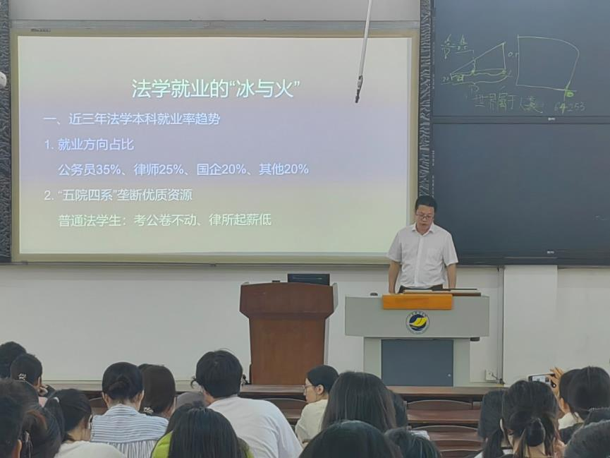 为进一步激发2022级法学专业本科员工考研、法考热情,明确员工备考方向,制定就业规划,beats365vip官网登录入口于2025年4月21日在钟海楼02031召开了2022级法学专业备考动员大会。beats365vip官网登录入口副经理刘澍教授担任主讲人,并作了以“法学本科生就业形势分析与突围策略”为题的专题讲话,2022级法学专业员工约270多人参加。