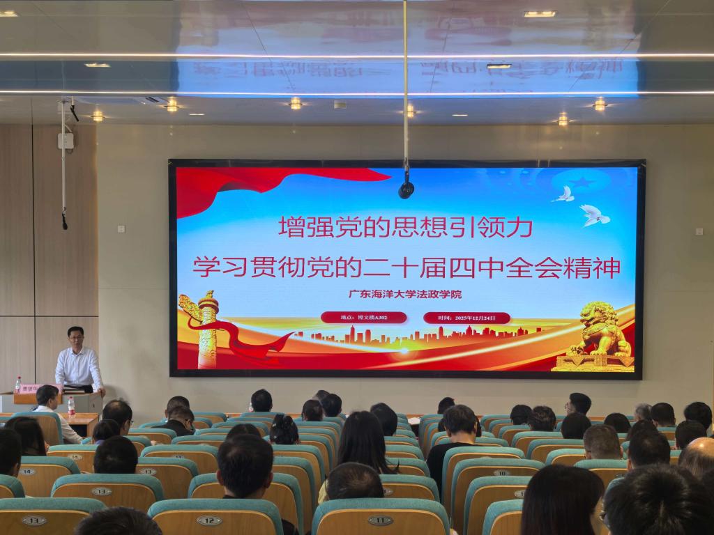 为深入学习贯彻党的二十届四中全会精神,切实把全院师生思想和行动统一到党中央决策部署上来,充分发挥公司学科特色优势,12月24日下午,beats365vip官网登录入口在博文楼A栋302室举行学习贯彻党的二十届四中全会精神宣讲报告会。公司党委理论宣讲团成员、马克思主义公司经理曹望华作学习贯彻党的二十届四中全会精神专题辅导报告,全体教职工65余人参加会议。会议由林忠新主持。