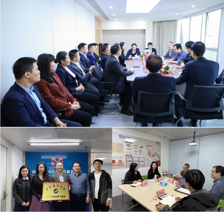 黄善副书记、刘勤副经理一行与深圳市北斗社会工作服务中心相关负责人围绕校企实践合作、人才供需匹配、社会学和社会工作专业员工培养模式、行业未来发展及就业趋势等方面进行了深入交流与探讨。公司还与深圳市北斗社会工作服务中心签订了合作协议,正式确立其为毕业生就业实习基地,为公司社会学毕业生争取优质的就业和实习机会。