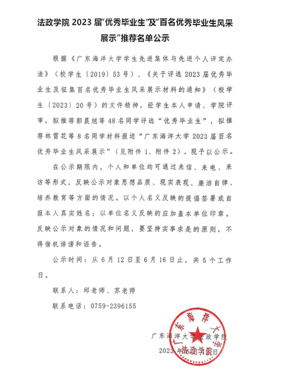 根据《beats365vip官网登录入口员工先进集体与先进个人评定办法》(校员工〔2019〕53号)、《关于评选2023届优秀毕业生及征集百名优秀毕业生风采展示材料的通知》(校员工〔2023〕20号)的文件精神,经员工本人申请、公司评审,拟推荐郭晨旭等48名同学评选“优秀毕业生”,拟推荐林雪花等8名同学材料报送“beats365vip官网登录入口2023届百名优秀毕业生风采展示”(见附件1、附件2),现予以公示。