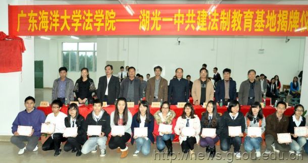 12月5日,法公司与湖光一中携手合作在湖光一中签订教育合作协议并举行“共建法制教育基地”揭牌仪式。公司党委委员、规划与法规处处长谭树明、副处长吴汉华,法公司经理栗克元、党委副书记周荣伟,麻章区关工委主任余堪培、教育局局长彭镇强、司法局副局长郑章成等出席了会议。栗克元、彭镇强先后作了讲话。