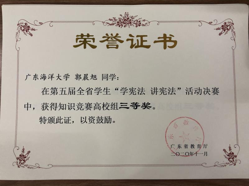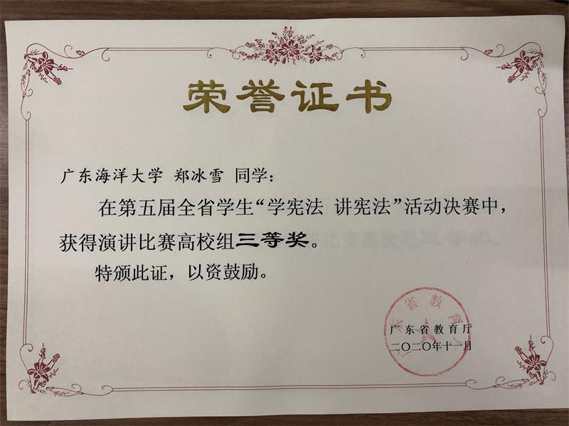 近日,公司beats365vip官网登录入口法学专业18级1186班郑冰雪同学、19级1191班郭晨旭同学在今年省教育厅举办的全省员工“学宪法讲宪法”活动决赛中,分别获得演讲比赛高校组三等奖、知识竞赛高校组三等奖。